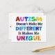 Inspirational quote of “AUTISM Doesn't Make Me DIFFERENT, It Makes Me UNIQUE” with colourful Autism puzzles to support and advocate Autism Awareness.