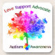 Beautiful spectrum tree with autism puzzles, butterflies, and hearts with the message of “Love Support Advocate” to support Autism Awareness.