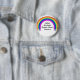 This button features a stylized rainbow, breaking into multicolored polka-dots at each end. Inside the arc are the words Autism Spectrum: Broader Than a Rainbow.