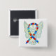 Autism Spectrum Disorder (ASD) awareness uses a puzzle piece ribbon. The awareness pin features the painting of a puzzle awareness ribbon angel on a custom button pendant. Puzzle awareness angel ribbon art lapel pins or buttons can be customized with personalized messages to make great cause buttons for fundraiser pendants for cancer or other causes, awareness pin gifts, or other special pendant events or awareness lapel pin for cause's occasions.