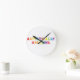 I bought the clock as a 'first time' grandmother. When I opened the package, I cried. the workmanship, material, color and the opportunity to personalize it was just perfect. I know that my grandson will be able to quickly learn to identify numbers, count and tell time! What a keepsake! I was totally happy with the printing, color choice and overall presentation of the clock!