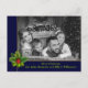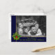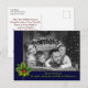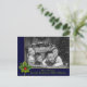 Personalize the front and back of this fun photo Christmas postcard. Your family photo filling the card face behind a blue and gold frame highlighted with a pine and holly bough. Bottom band holds your names and Christmas greeting in a soft green font. You can personalize the backside holiday greeting, your return address and your names in script near the bottom with space for you to add a handwritten personal note.