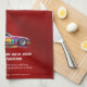 A glorious and luxurious kitchen towel for an auto body shop and painting business reception area. The logo is a sports car with an incredible paint job on a rich, crimson, metallic-look background. Customise with your details and give a strap line, quote or personal message to give a professional feel and really sell your service. These also make great promotional giveaways to help market your business