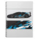 Notebook is shown with a photo print of a auto race car.