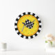 Auto Race Fan Chequered Flag Black Yellow Custom Large Clock