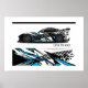 Poster shown with a photo print of a sleek race sports car.