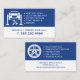 Modern, fully editable royal blue and white car automotive mechanic service repair business card with specific logo and services list.