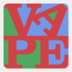 Le mot VAPE en lettres rouges sur un arrière - plan vert et rouge. Les lettres VA sont en haut (l'A est canté latéralement) et PE en bas. Un hommage à l'art pop, dédié à tous les vapeurs.