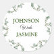Feuilles de couleur verte à l'aquarelle, autocollant rond pour invitation de mariage