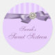 Ce sceau élégant personnalisable Sweet sixteen d'enveloppe d'anniversaire comporte un arc violet sur un arrière - plan rayé violet. Customisez-le en ajoutant vos détails dans la police de votre choix !