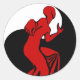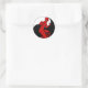 Mouvement Tai Chi Single Whip avec autocollant symbole Yin Yang. La personne est montrée en position simple classique avec la main gauche devant le coeur (face à la paume vers l'extérieur). Le bras droit est étendu vers l'arrière avec le pouce et les doigts ensemble. La figure est placée dans une composition circulaire avec un symbole yin yang qui représente l'idée d'équilibre.
