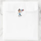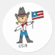 Mignonne figure cowboy habillé de patriotique USA rouge, blanc et bleu tient et agite le drapeau des Etats-Unis sur des boutons, cartes, tongs, tee-shirts, mousepads, et plus encore !