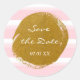 Autocollant aquarelle à rayures blanches roses et feuille d'or. Personnalisez avec n'importe quel texte. Articles assortis dans ma boutique.