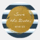 Autocollant aquarelle à rayures bleues et blanches avec feuille d'or. Personnalisez avec le texte de votre choix. Articles assortis dans ma boutique.