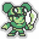 Cet autocollant présente l'art pixel de Beryl Hatebad, le maître-quart des pirates du ciel dernier et la tête logique sur les épaules de chacun. Ce design a été réalisé par Thomas Lessa.