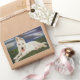 Poupée berger allemand blanc à oreille floppy posée dans l'herbe