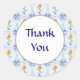 Un autocollant rond de Merci avec tulipe vintage bleue et blanche de delft art de tulipes jaunes et des éléments florneurs simples en bleu avec un look peint à la main et le texte personnalisé bleu. Cliquez sur Customiser pour modifier les polices, les couleurs arrière - plans, télécharger une image et plus encore, même enregistrer votre conception pour plus tard.