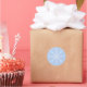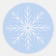 Un autocollant rond bleu ou un sceau d'enveloppe représentant un flocon de neige en style ligne.