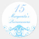 Ce sticker élégant personnalisable Quinceanera présente une tiare bleue & tourbillons sur un arrière - plan blanc. Customisez-le en ajoutant vos détails dans la police de votre choix !