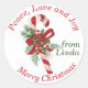 Lorsque cadeau donnant cette période de fêtes n'oubliez pas vos autocollants de Noël personnalisés! Cet autocollant présente une illustration vintage de sucre de canne avec les mots "Paix, Amour et Joie" et "Joyeux Noël". Personnalisez en ajoutant votre nom. Parfait pour les paniers cadeaux, les étiquettes cadeaux ou comme sceau sur vos cartes de Noël!