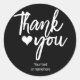 Ajoutez une touche d'élégance et de chaleur à votre emballage avec cet autocollant « Merci » noir et blanc élégant, orné d'un cœur rouge audacieux pour une touche d'amour. Parfait pour les petites entreprises, les faveurs de fête, les mariages ou l'emballage de cadeaux. Simple, chic et sincère — un petit détail qui laisse une impression durable.