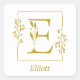 Joli sceau / autocollant présentant un cadre botanique dessiné à la main en or avec la lettre E botanique au centre. Personnalisez avec le nom