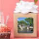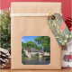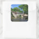 sticker photo souvenir carré du château et du pittoresque village historique de Ségur-le-Château avec ses maisons à colombages le long de la rivière Auvézère à Limousin, France.