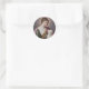 Un autocollant rond présentant une image agrandie et remastérisée numériquement de Sainte-Agnès tenant un agneau blanc. Sainte-Agnès est mentionnée dans le Canon romain.