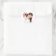 Comprend 20 petits autocollants sur une feuille. Autocollant de dessin animé adorable d'un marié et d'une mariée échangeant des sourires, parfait pour les célébrations de mariage et les gestes romantiques.