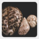 Photo de vie morte de trois coquillages tachetés sur un arrière - plan noir.