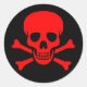 Autocollant noir avec crâne rouge et os croisés.