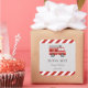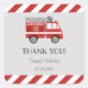 Autocollant carré pour la fête d'anniversaire avec design de camion feu et combinaison de couleur rouge.