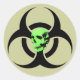 Autocollant de zone métallique lourde du crâne vert brillant bio-danger par des plantes aléatoires.