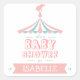 Un autocollant parfait pour une douche à thème cirque, carnaval ou carrousel - ce joli design rose et bleu turquoise dispose d'une grande tente à rayures au-dessus de la typographie amusante et est un excellent autocollant pour décorer des pique-niques ou des faveurs de fête.
