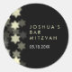 Un autocollant approprié à votre étoile de barre ou de bat mitzvah ! Les projecteurs fanés d'étoile de David font un bord saisissant sur un fond noir riche. La barre ou le nom ou tout autre message du bat mitzvah se tient dans jaune-clair avec la date d'événement ci-dessous dans le blanc lumineux. Disponible avec les produits assortis.