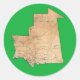 Une carte de la Mauritanie est centrée sur un arrière - plan couleur drapeau sur cet autocollant. Restez fidèles aux valeurs mauritaniennes !