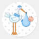 Design bébé bleu pour bébé garçon avec cigogne portant bébé garçon sur un arrière - plan de coeur bleu. Grand sceau d'enveloppe pour les invitations à la douche bébé ou les annonces de naissance. com