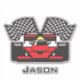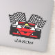 Sticker en Contour Conception Voiture Course avec texte facultatif, disponible en différentes tailles.