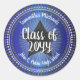 Personnalisez cet autocollant de sceau d'enveloppe d'invitation de remise de diplôme de classe de dégradé de bleu royal avec votre nom, année de remise de diplôme et école.