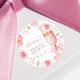 Autocollants de Fête de Mariage Prosecco à Petales avec Ruban Rose, avec un verre de prosecco doré et rose orné de fleurs roses délicates et d'un ruban rose. Le design est parfait pour un brunch chic sur le thème Petales et Prosecco et une célébration pétillante.