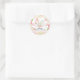 Joli sticker thé nuptiale de la douche de faveur avec un pot de thé & tasses sur un plateau de service avec un gâteau rose encadré de belles fleurs.