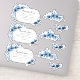 Autocollant de contour avec fleurs d'aquarelle bleue et feuillage avec un étiquette produit et fleurs complémentaires. L'autocollant de produit est adapté pour les bougies parfumées, les cadeaux de bain à la bombe, le beurre de corps, les articles en conserve, les bonbons faits main, le étiquette de boisson ou autre.