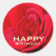 Autocollant personnalisable de joyeux anniversaire avec la photographie de rose rouge.