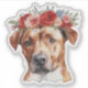 Autocollant de la Saint-Valentin Chien mignon portant une couronne de fleurs sur la tête. Idéal pour la Saint-Valentin ou toute autre occasion. Fabrication de cartes ou de scrapbook adorable. Ou vous aimez simplement les autocollants et aimez les placer partout.