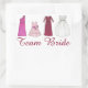 Les autocollants présentent l'illustration originale d'une rangée de robes de mariée, avec TEAM BRIDE dans une police bordeaux. Idéal pour l'artisanat mariage ou la décoration ! Designer est disponible pour créer et télécharger des designs personnalisés qui correspondent aux couleurs et aux thèmes de votre mariage. Cliquez sur "Demandez à ce concepteur" pour lancer le processus de conception !