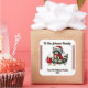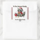 Un joyeux raton laveur portant une écharpe d'hiver adore les gâteries de vacances à côté d'une tasse à vapeur. Cet autocollant coloré ajoute une touche festive à l'emballage cadeau et capte l'essence de la joie, du rire et de l'esprit de famille pendant les célébrations de Noël.