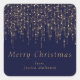 Autocollant Joyeux Noël avec des lumières dorées et scintillantes. Le design est élégant dans des tons bleu foncé et or. L'autocollant peut être personnalisé avec un nom. L'autocollant peut être utilisé comme élément de votre emballage cadeau de Noël ou comme sceau d'enveloppe pendant la période festive.