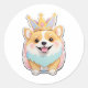 Corgi joyeux avec couronne minuscule et queue agitée dans des couleurs pastel.