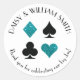 Les paillettes sarcelle fausses et les enseignes de cartes noires sont encerclées par du texte personnalisable, ce qui rend ces autocollants ronds parfaits pour toutes sortes de projets et d'occasions. Utilisez-les pour étiqueter les faveurs pour les invités de mariage, pour fermer les enveloppes et plus encore.