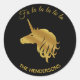 Cet autocollant de vacances est accentué de Fa la la la écrit dans une police fantaisie, votre nom et une licorne dorée illustrée, lui donnant une atmosphère magique pour les vacances. Cet autocollant est facile à personnaliser et est parfait comme sceau d'enveloppe ou étiquette cadeau pendant la saison des vacances.